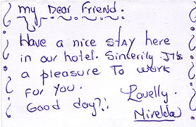 Otteita matkatoimiston hulppeasta, monisatasivuisesta, ylitsepursuavan runsaasta, globaalista värikuvaesitteestä: "Kestävän matkailun ohjelma... Otamme huomioon kohdemaitten niin ympäristön kuin elämäntavankin... Matkailuelinkeinon vastuullinen kehittäminen... Tiedostamme toimintamme vaikutukset... Pyrimme pienentämään matkailun kielteisiä vaikutuksia... Vastustamme ympäristön kuormittamista... Ympäristön ja paikalliskulttuurin huomioiminen... Sustainable tourism development... Haaskauksen välttäminen... Materiaalien kierrätys ja uudelleenkäyttäminen... Tulevaisuuden haasteet... Koulutus... Ympäristö- ja kulttuurihankkeet... Ympäristön saastumisen ehkäiseminen... Jne. jne. Irvokasta. Yhtä ällöttävää kuin takavuosina, kun Itämerta tuhoavat laivayhtiöt lätkäsivät hylje -logon paattiensa kylkiin - maksettuaan ensin luonnonsuojelujärjestöille näiden vaatimat "aneet"...